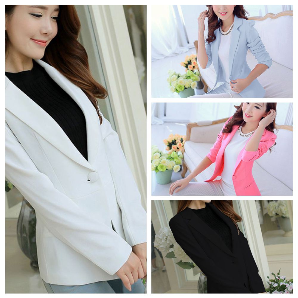 Blazer Wanita Dengan Model Potongan Slim Lengan Panjang Warna Polos Untuk Kantor Musim Semi Gugur Shopee Indonesia