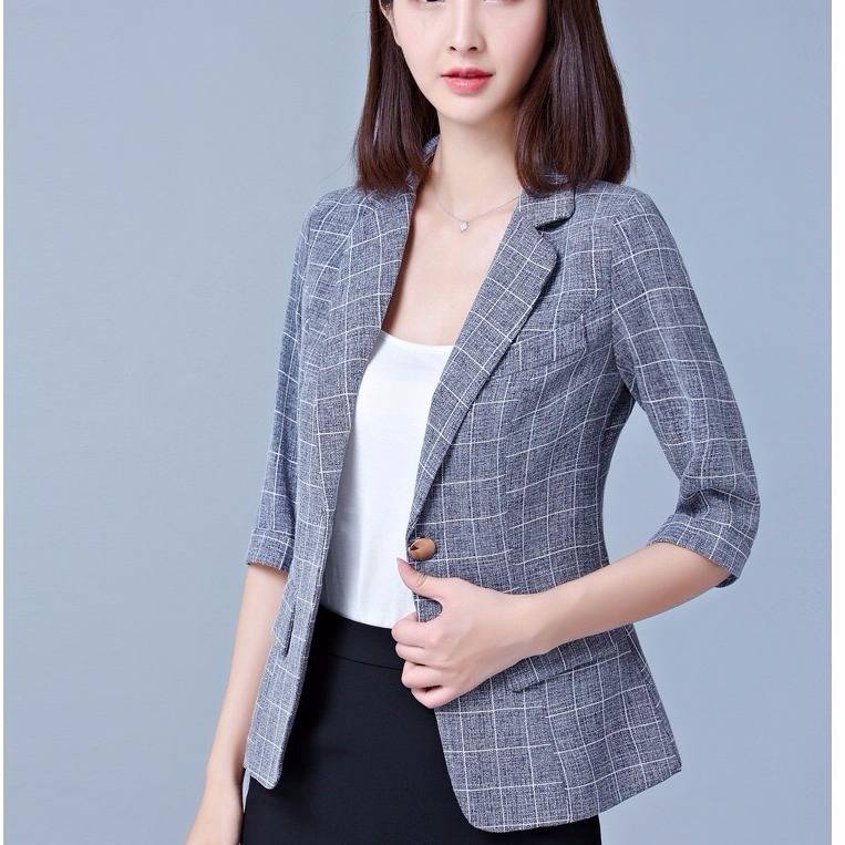Blazer Wanita Lengan 3 4 Model Tipis Motif Kotak Kotak Shopee Indonesia